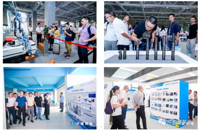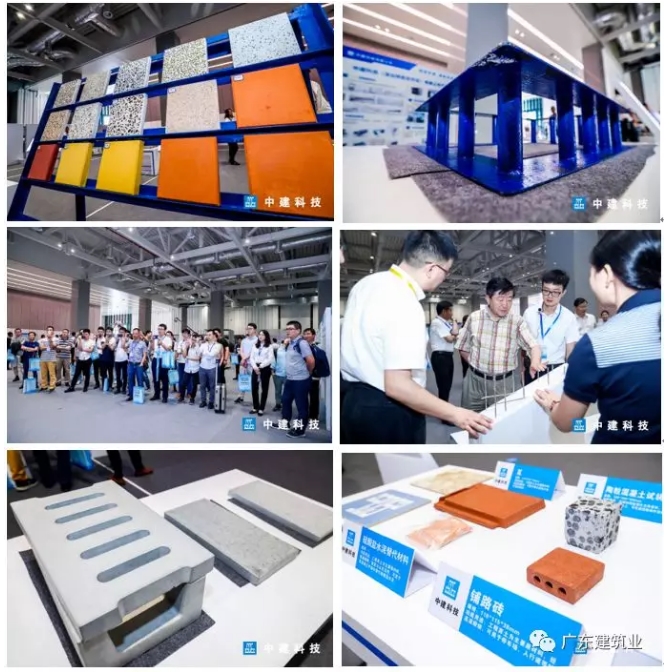 中建科技所展出小型一体化装配式智慧公厕、装配式建筑智慧建造平台、智能建造机器人、基于光纤光栅的结构健康监测系统、光伏镂空柱帽、渣土透水砖、生态弃土发泡混凝土、光伏建筑一体化外墙样板等十余项创新产品吸引大批嘉宾驻足观看、深入咨询。